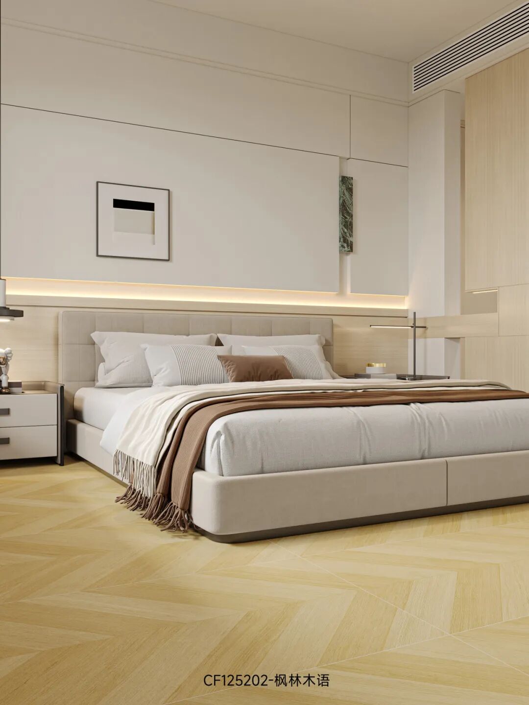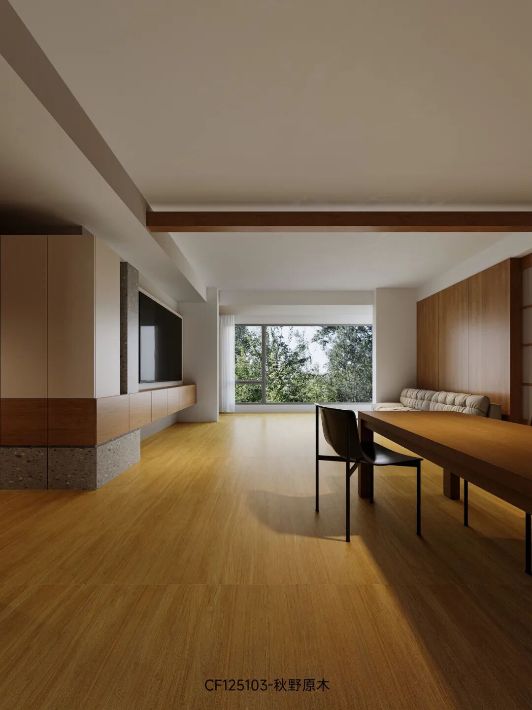 600×1200mm主流规格,哑光釉面细腻还原天然原木凹凸肌理,纹理自然流畅、触感温润亲肤,视觉柔和治愈,轻松打造兼具质感与温馨的理想家居空间。