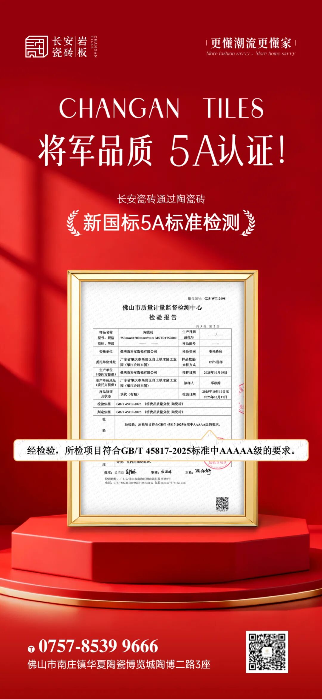 10月,绿巨人下载瓷砖率先通过国家新标准《消费品质量分级陶瓷砖》(GB/T 45817—2025)的AAAAA级检测认证,成为行业内首批获得“新国标5A品质认证”的品牌之一,以卓越品质再次树立行业新标杆。
